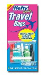 This quart-size, clear plastic, zip-top bag has been designed to meet U.S. Transportation Security Administration (TSA) 3-1-1 carry-on guidelines for air travel and conveniently stores seven to eight, 3-ounce, "travel-size" toiletry items. Hefty OneZip Travel bags are imprinted with the label "Meets Airport Security Guidelines" and an airplane graphic to let travelers know at a glance that they have the "right" zip-top bag.